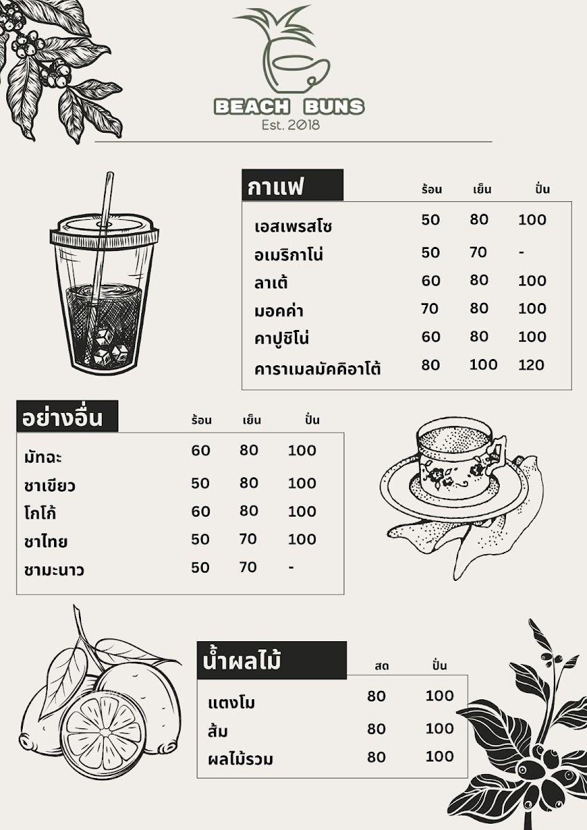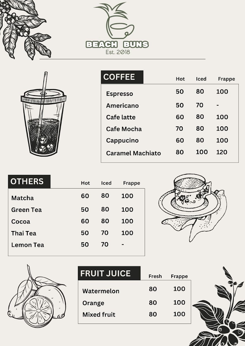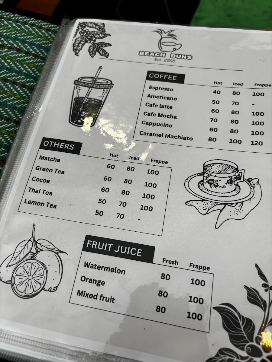 Beach Buns Cafe & Bakery Menu